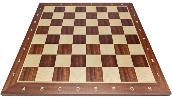 Et pent sjakkbrett i internasjonal turneringsstørrelse til en god pris. De mørke feltene og kanten rundt brettet er mahogny, de hvite er ahorn. Behagelig notasjon langs kantene.