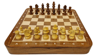 KjøpEt praktisk, vakkert indisk sjakkspill med gode magnetiske Staunton-brikker som ligger i en skuff inni brettet og legges dit igjen under eller etter partiet. Egner seg dermed også som et stort og staselig reisesjakkspill.